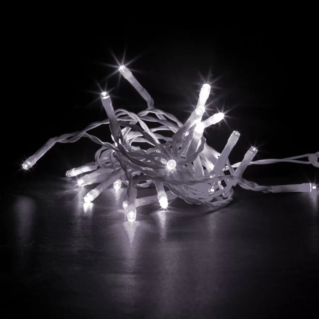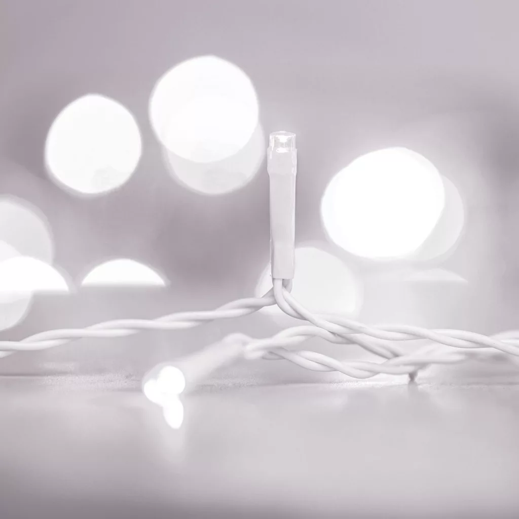 Díszítse otthonát középfehér, LED fényfüzérrel! Az 5 méteres kábelhosszal ideális lehet karácsonyfák, lakások, különböző helységek és kültéri homlokzatok ünnepi díszítésére. A kábel végén lévő csatlakozó segítségével könnyen toldható, így akár hosszabb fényfüzér is egyszerűen vezérelhető egy tápegységről. A tápegységen lévő kapcsoló segítségével válthat az egyes fényprogramok között. Elérhető melegfehér, hidegfehér és középfehér változatban is.