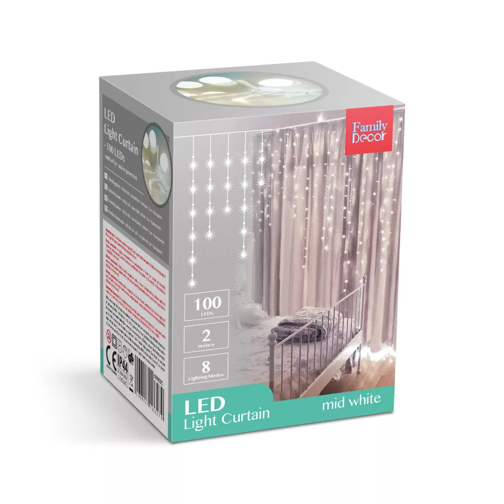 Fényfüggöny - 100 db LED - középfehér - hálózati - IP44 - 2,2 m - 8 program