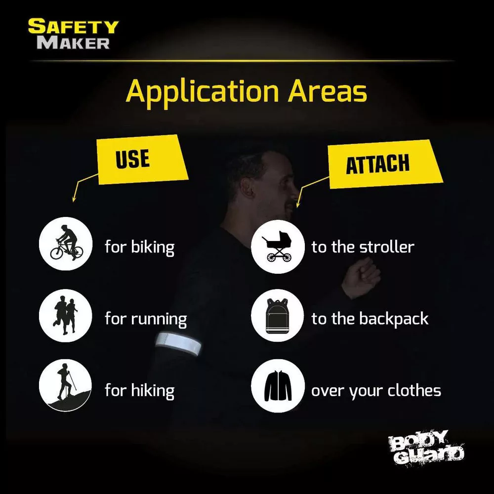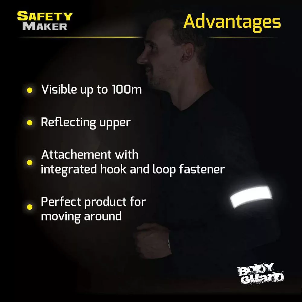 Külső felülete rendkívül erős erős fényvisszaverő anyagból készül. Ezt a káprázatos biztonsági funkciót - szó szerint - lehetetlen figyelmen kívül hagyni, és 100 méternél távolabb is láthatóvá teszi a többi közlekedő számára. Ez életeket menthet a sötét utakon, gyenge fényviszonyoknál, alkonyatkor vagy éjszaka, rossz időjárási körülmények között. Tépőzárral rögzíthető.