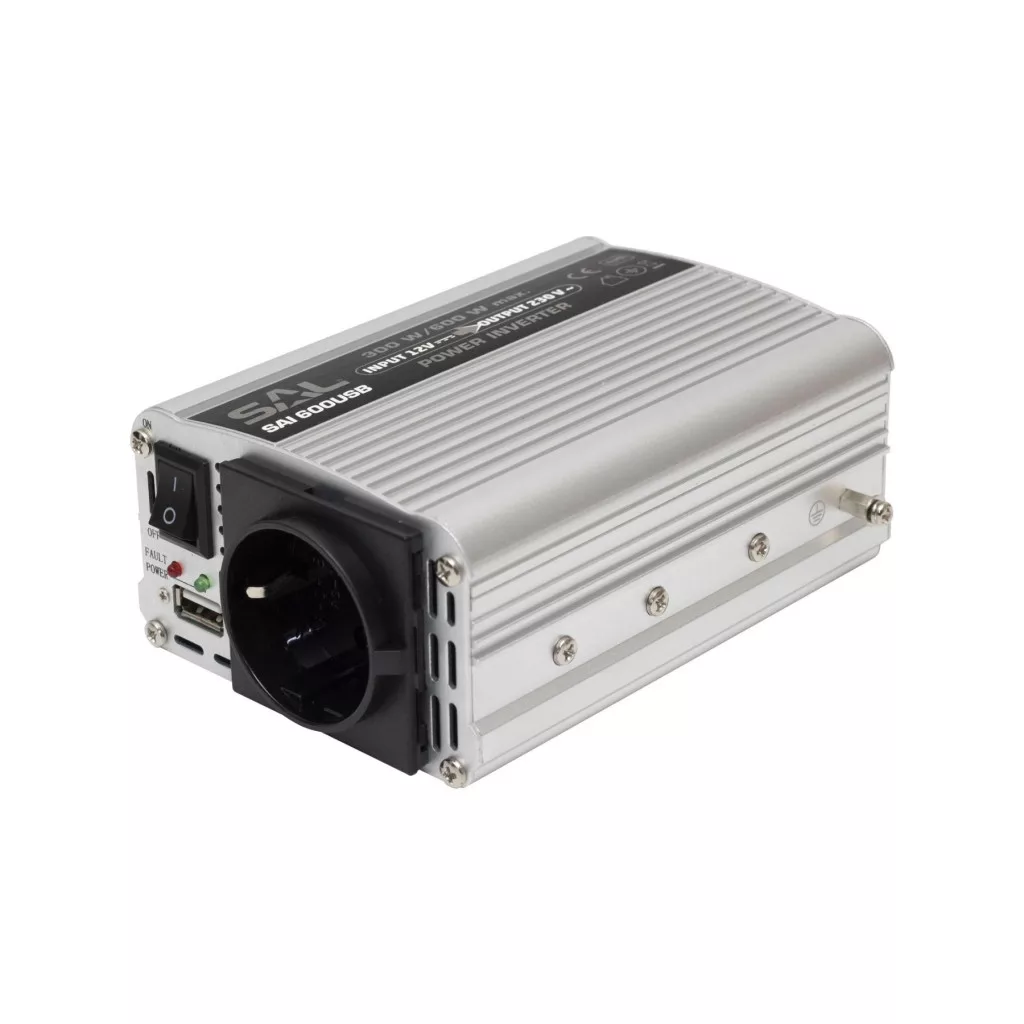 A SAI 600USB feszültségátalakító hálózati feszültséget állít elő, ha rendelkezésére áll 12 V. Előnye, hogy alkalmazható járműben, hajón, kempingben. Kb.300 W folyamatos terhelhetőség, illetve 600 W csúcsterhelhetőség jellemzi. A készüléken USB töltőaljzat is található. A hálózati aljzat gyermekzárral van ellátva. Válassza a minőségi termékeket és rendeljen webáruházunkból!