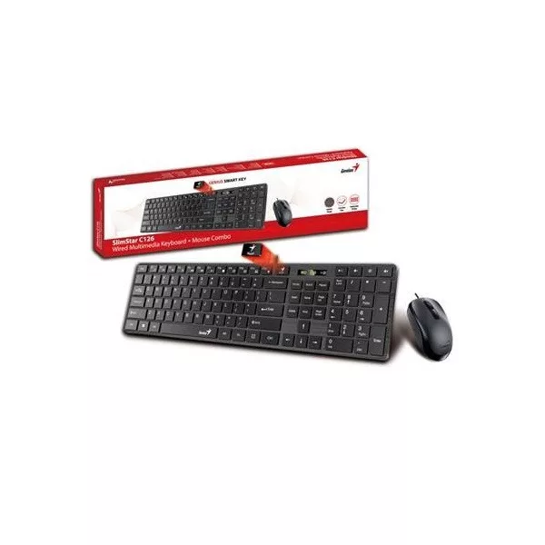 GENIUS Vezetékes Billentyűzet + egér Slimstar C126 USB HUN Fekete