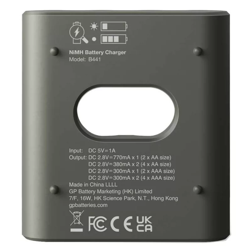 a csomagolt cellák töltési ideje: 3:00/6:00|a feltöltött akkumulátorok típusa: NiMH|a feltöltött cellák mérete: AAA, AA|alkáli elemek érzékelése: igen|cellák száma a csomagolásban: 4|cellák típusa a csomagolásban: AA ReCyko 2 100|csatlakozó típusa: USB|egyidejűleg töltött akkumulátorok száma: 2 vagy 4|értékesítési csomagolás: 1 db, kis papír doboz|fordított polaritás elleni védelem: igen|márka: GP|méretek: 75 × 85 × 25 mm|sérült elemek érzékelése: igen|speciális funkciók: nincs megadva|tápkábel (tartozék): micro USB|táplálás: USB 5 V/1 A|töltési áram 9 V: nincs megadva|töltési áram AA: 770 mA/380 mA|töltési áram AAA: 300 mA|töltési áram C: nincs megadva|töltési áram D: nincs megadva|töltési csatornák száma: 2|töltési idő 9 V 200 mAh: nincs megadva|töltési idő AA 2 700 mAh: 4:00 - 8:00|töltési idő AAA 1 000 mAh: 2:30 - 3:30|töltési idő C 3 500 mAh: nincs megadva|töltési idő D 4 500 mAh: nincs megadva|töltő típusa: okos