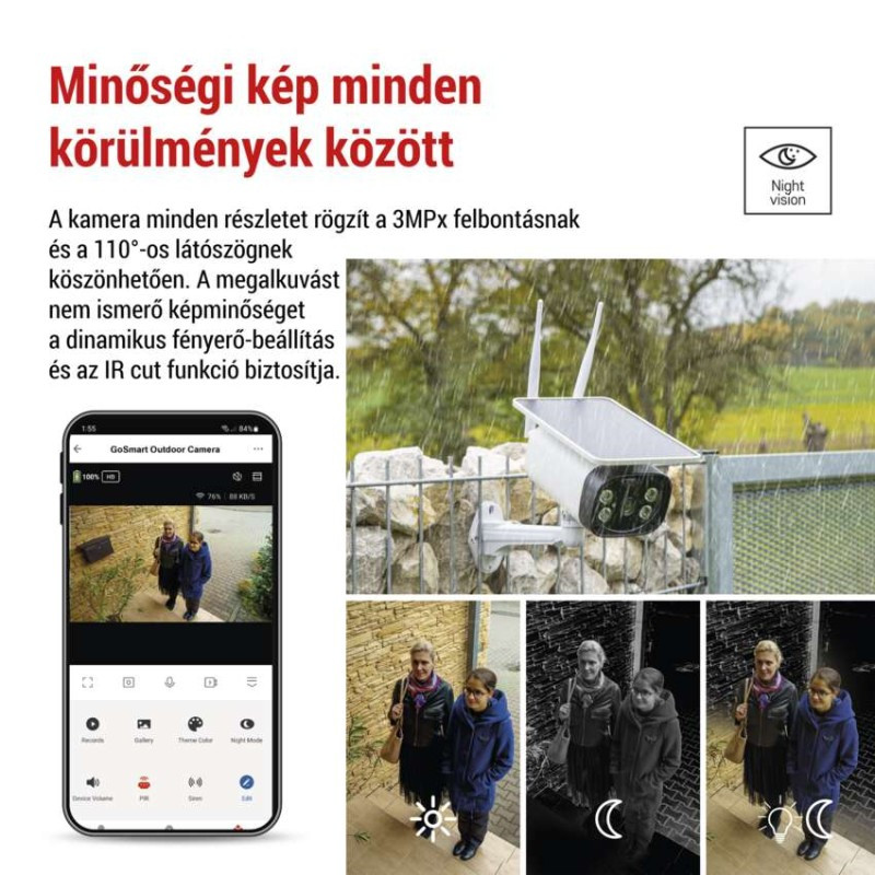 GoSmart Kültéri akkumulátoros kamera IP-600 EYE wifivel és napelemmel