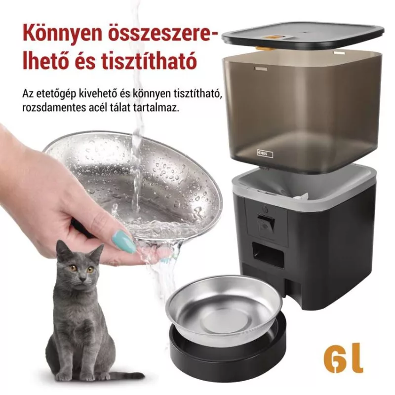 GoSmart állateledel adagoló kamerával Pet Care, 6 l, fekete, Wi-Fi