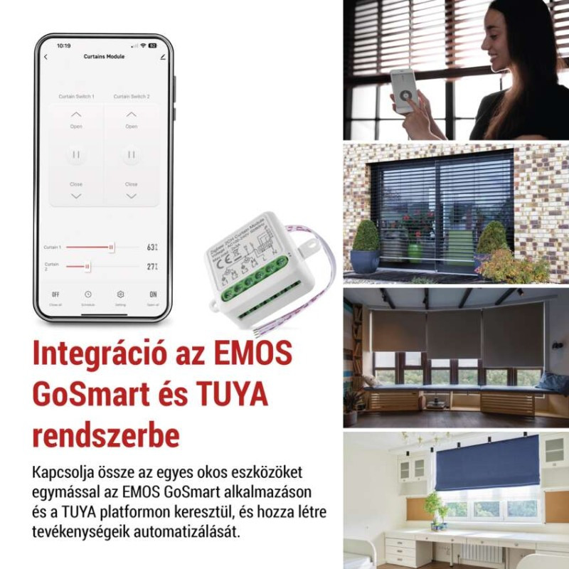a csatlakoztatott ügyfelek maximális száma: –|alkalmazási nyelvek: EN, CZ, SK, PL, DE, HU, SI, FR, + 60 másik nyelven|a vezérlőgombok száma: 1|csatlakoztathatóság: ZigBee 2,4 GHz|értékesítési csomagolás: 1 db, kis papír doboz|hangalapú asszisztensek általi vezérlés: igen|használat: beltéri|kompatibilitás: EMOS GoSmart, Tuya, Lidl, Smartlife, nyitott rendszer|magasság: 40 mm|mélység: 18 mm|párosítás: automata, manuális|protokoll: Zigbee 3.0|súly: 30 g|szélesség: 40 mm|támogatott OS: Android, iOS|táplálás: 230 V~/50 Hz, max. 0,3 W|tartozék tápegység: –|termék: IP motor modul