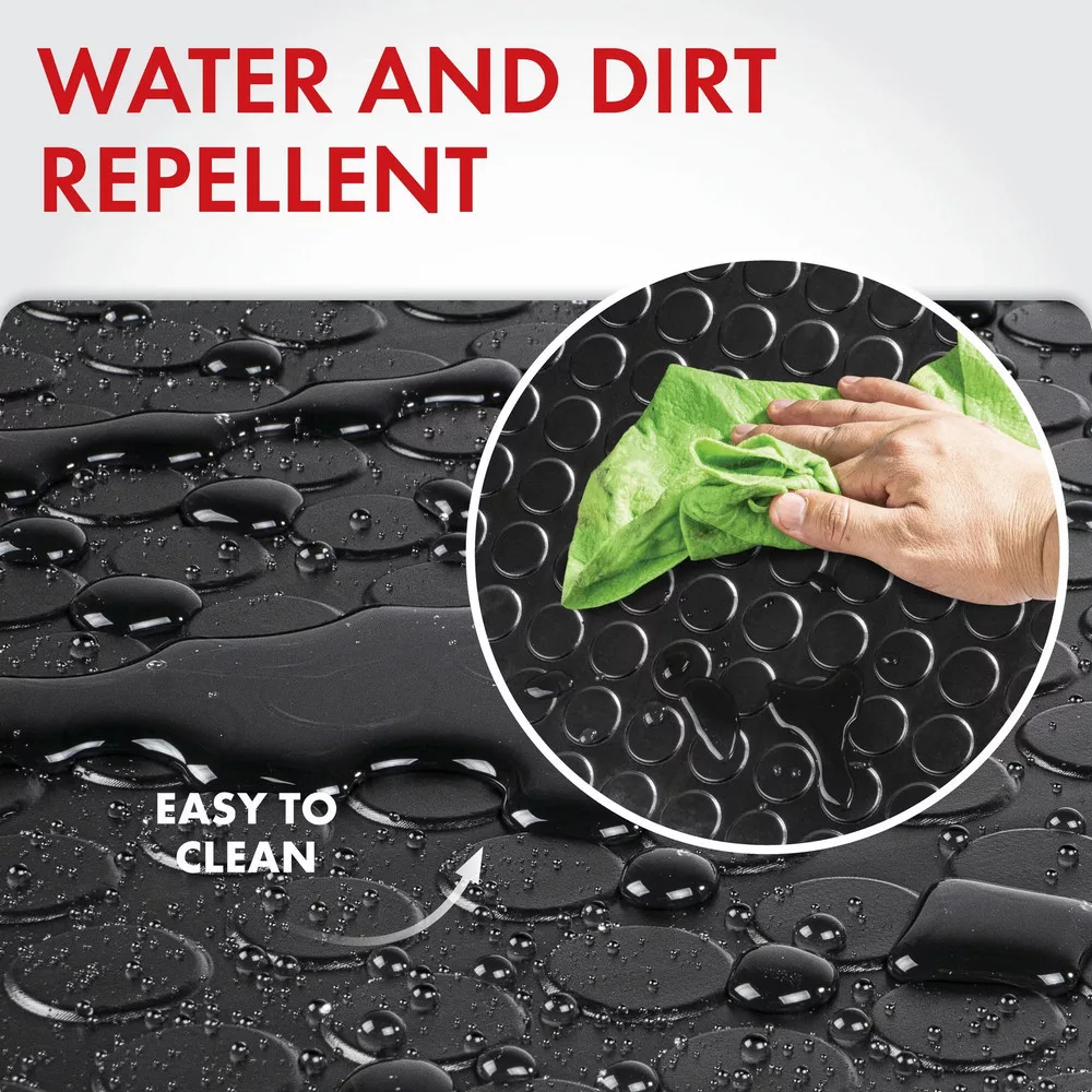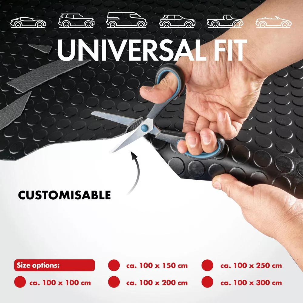 Az univerzális szőnyeg rendkívül strapabíró NBR (nitril-butadién gumi) anyagból készült. Az anyag viszonylag puha, és ollóval vagy vágókéssel könnyen a kívánt formára és méretre vágható. A hátulján csúszásgátló felület került kialakításra. Tartós, könnyen tisztítható. Tökéletesen alkalmas a járműveken kívül pl. rakodótórben, műhelyben, hajón, lalókocsiban, garázsban, háztartásban való felhasználásra is!