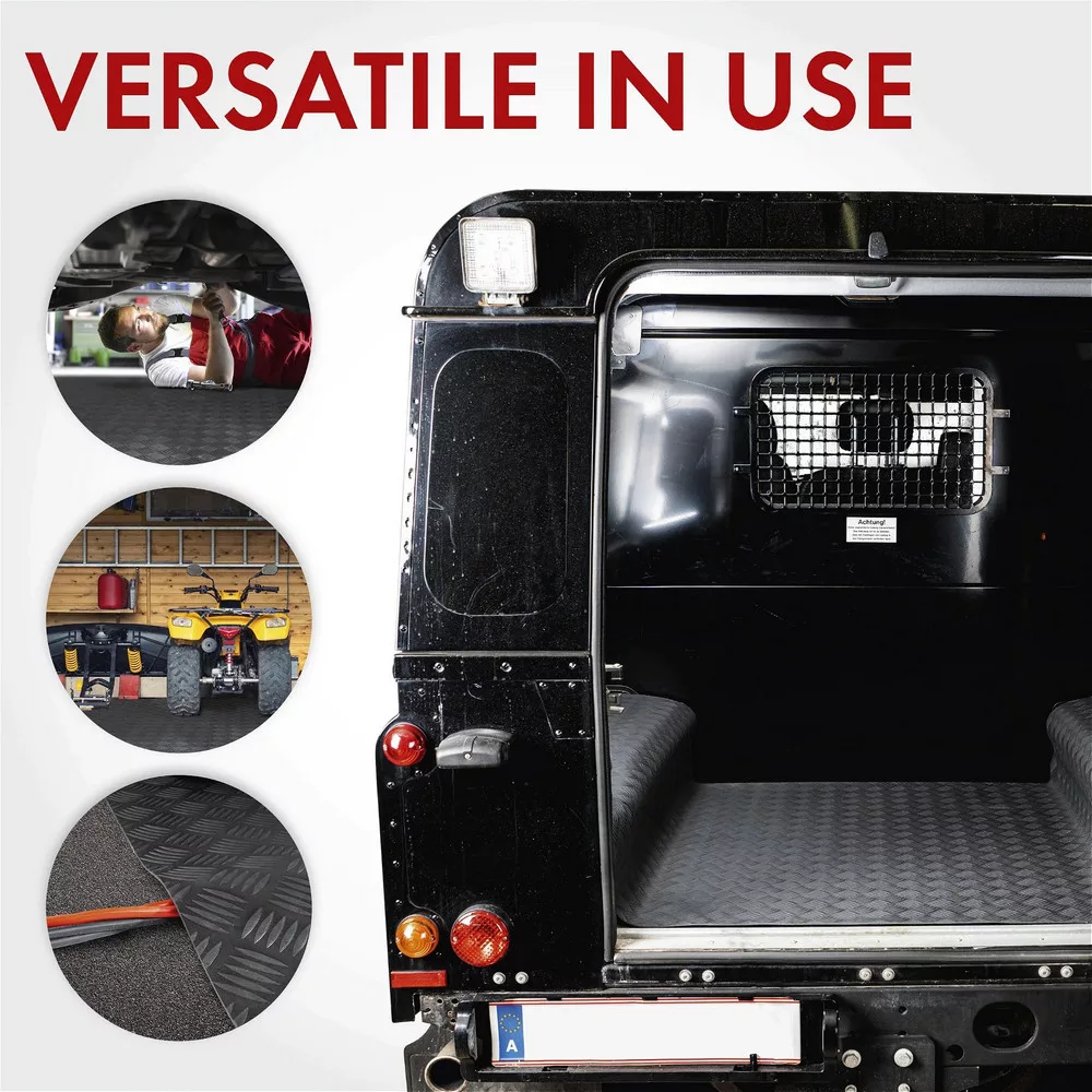 Az univerzális szőnyeg rendkívül strapabíró NBR (nitril-butadién gumi) anyagból készült. Az anyag viszonylag puha, és ollóval vagy vágókéssel könnyen a kívánt formára és méretre vágható. A hátulján csúszásgátló felület került kialakításra. Tartós, könnyen tisztítható. Tökéletesen alkalmas a járműveken kívül pl. rakodótórben, műhelyben, hajón, lalókocsiban, garázsban, háztartásban való felhasználásra is!