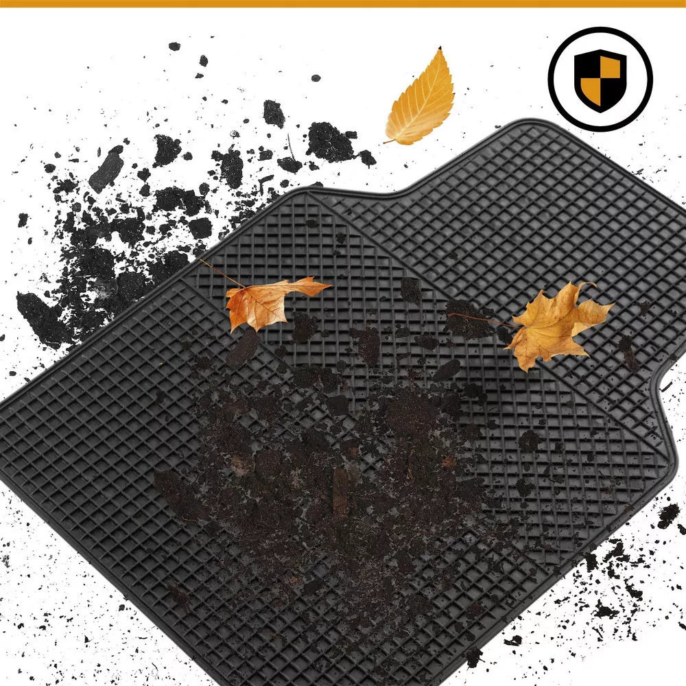 Az univerzális szőnyeg strapabíró NBR (nitril-butadién gumi) anyagból készült. A hátulján csúszásgátló tüskék vannak rögzítve, hogy megakadályozzák a gumiszőnyeg elcsúszását a lábtérben. Az univerzális méretnek köszönhetően a szőnyeg a típuslista szerint számos gyakori járműhöz alkalmas, és tökéletesen védi a lábteret a szennyeződésektől.