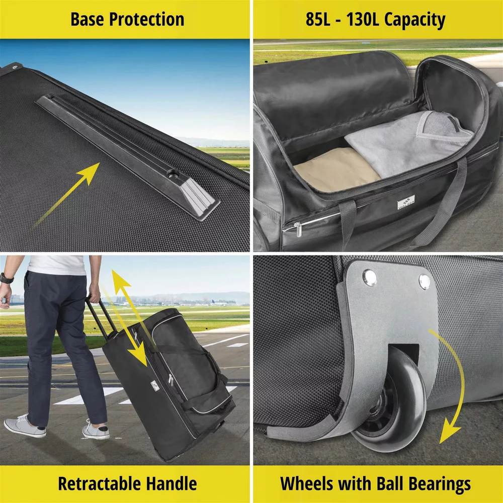A könnyű kocsi két kerékkel és egy kihúzható fogantyúval rendelkezik, így a csomagok könnyen mozgathatók. Két külső rekesz van cipzárral, amelyek lehetővé teszik a dokumentumok biztonságos tárolását, amelyeknek kéznél kell lenniük. Ezenkívül a táska két fogantyúval mozgatható, így ideális minden utazáshoz.