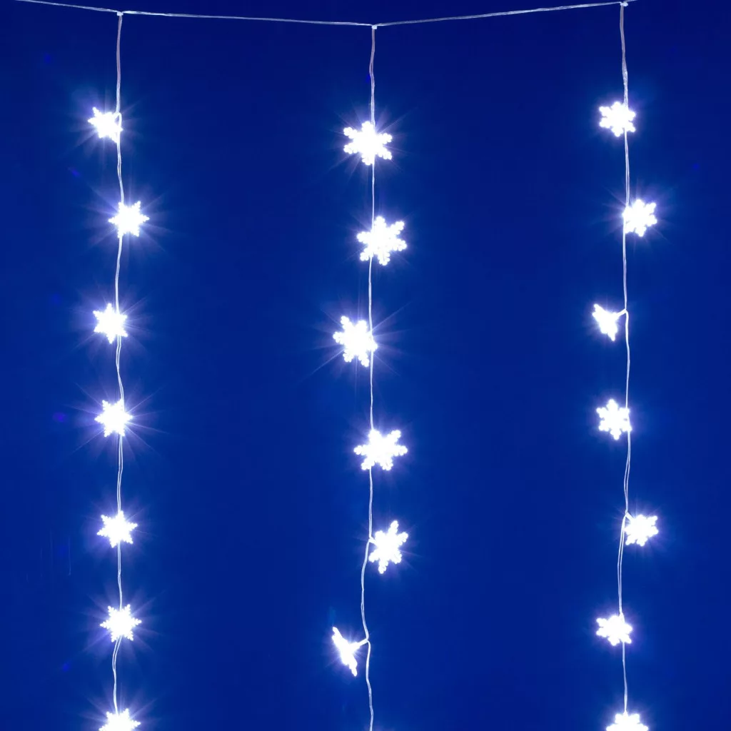 A fényfüggöny különlegessége a 50 darab 7 cm-es hópehely, amelyek mindegyike hidegfehér LED-del világít, így a fényhatás friss, havas ragyogást idéz. A fények tisztasága és a hópelyhek részletgazdag kialakítása igazán ünnepi díszítést biztosít, amely harmonikusan illik a karácsonyi dekoráció többi eleméhez.