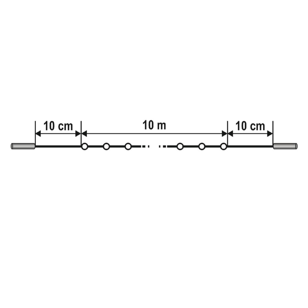 A fényfüzér 230 V-os tápellátással működik, amely stabil fényerőt biztosít a teljes hosszában. A termék sorolható kivitelben készült, így több füzér egymáshoz csatlakoztatásával akár nagyobb területek is bevilágíthatók. Fontos tudni, hogy a hálózati csatlakozó kábel nem tartozék, azt külön kell megvásárolni a használathoz.