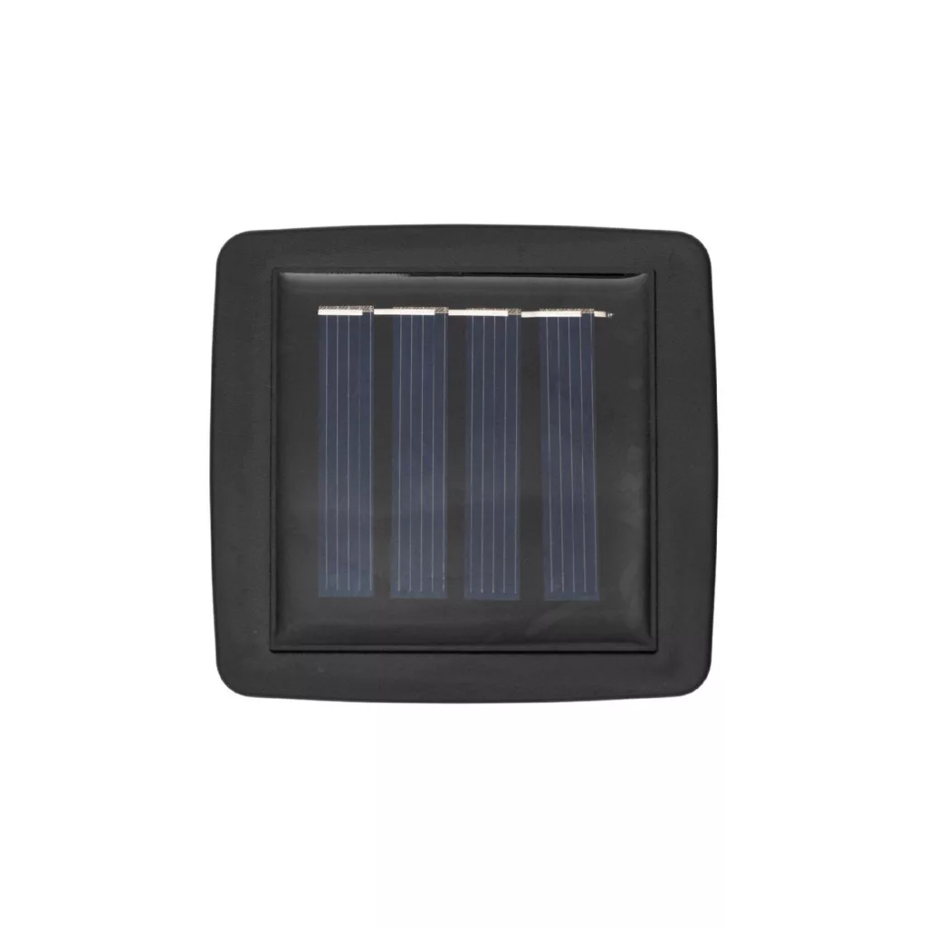 A füzérhez tartozó leszúrható napelem könnyen elhelyezhető napos helyen, és automatikusan tölti az akkumulátort. A rendszer önműködő: naplemente után bekapcsol, napfelkeltekor pedig automatikusan kikapcsol, így nincs szükség manuális vezérlésre.