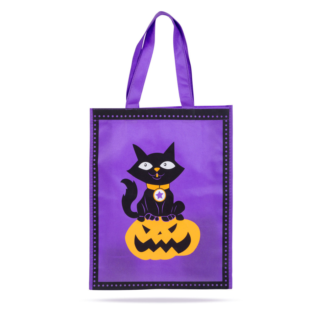 Ha szeretne igazán ütős és stílusos ajándékot adni barátainak és családjának halloweenkor, akkor ez a halloweeni ajándéktáska tökéletes választás lehet átnyújtására! A vidám designnal ellátott, nem szőtt anyagból készült táska, macska, tök, koponya motívummal díszített. Strapabíró anyagból készült, mérete miatt ideális nagyobb ajándékok és édességek tárolására alkalmas. Nagyméretű fogantyújának köszönhetően könnyű és kényelmes hordozhatóságot biztosít.