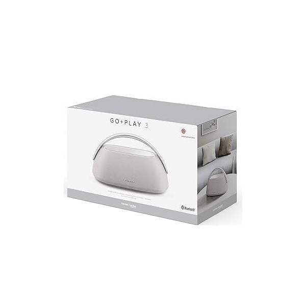 A Harman Kardon Go + Play 3 a már ismert formával érkezik, de a legújabb generációban edzett üveg tetejű érintőpanellel rendelkezik, amely kész az intuitív használatra. A rács szövete vonzza a szemet; elegáns, de masszív. A kiváló minőségű alumínium fogantyú ergonómikus kialakítású, hogy megkönnyítse a hordózhatóságot.