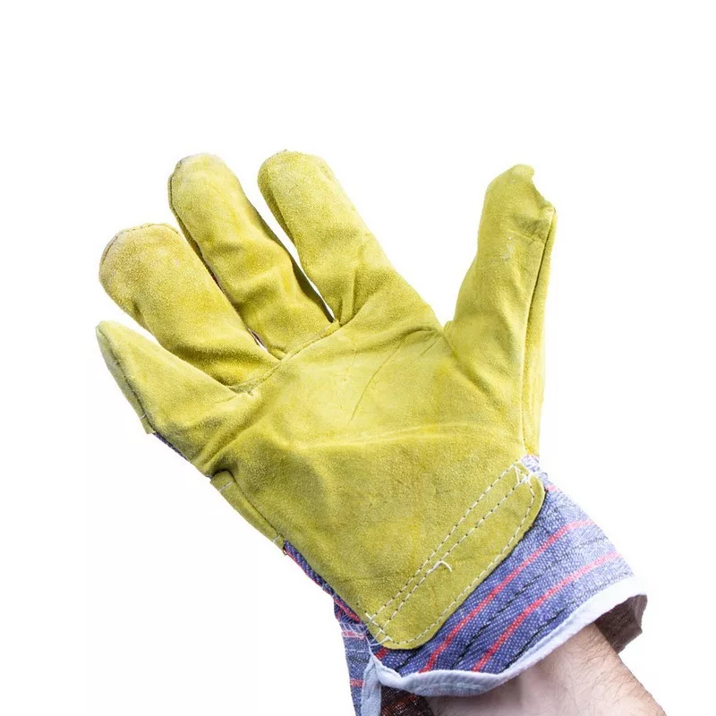 • Vastag (160 g), sárga, hasított marhabőr, vászon kézhát és mandzsetta.