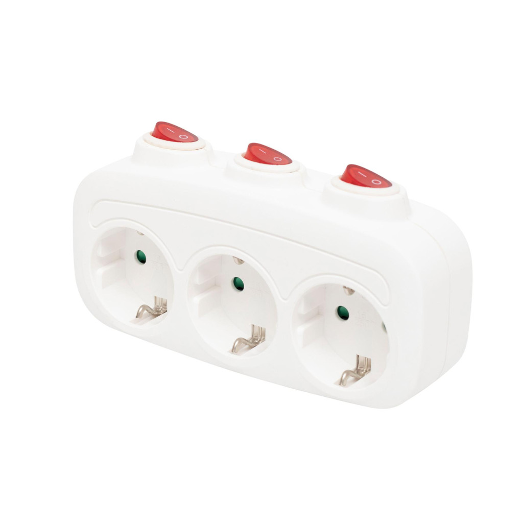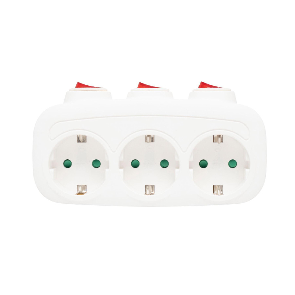 Három földelt aljzattal rendelkezik, mindegyikhez tartozik egy saját, egypólusú kapcsoló. Így könnyedén irányíthatja az egyes csatlakoztatott eszközök áramellátását anélkül, hogy ki kellene húznia a csatlakozódugókat. Fontos megjegyezni, hogy a teljes biztonság érdekében a készülék csak akkor lesz teljesen feszültségmentes, ha azt kihúzzuk az áramforrásból.