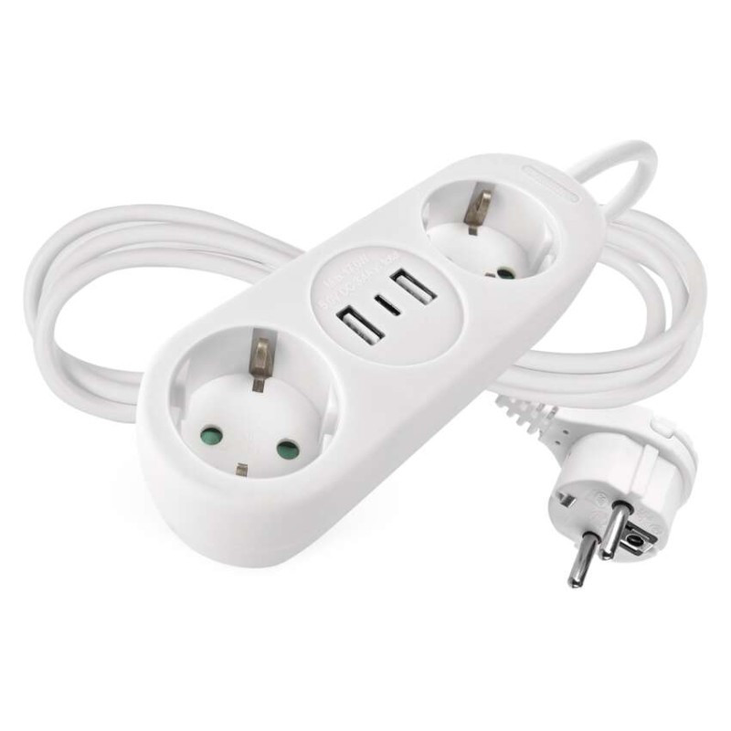 aljzatok száma: 2× 2P + PE|alkalmazási nyelvek: –|az aljzatok és dugók anyaga: műanyag|értékesítési csomagolás: 1 db, akasztható|értesítések a mobilalkalmazáshoz: nem|feszültség/áram: 250 V~/16 A max.|gyerekzár: igen|hangalapú asszisztensek általi vezérlés: nem|hossz: 1,4 m|jelátviteli frekvencia: –|kapcsoló: nem|kompatibilitás: –|max. terhelés: 3 680 W|protokoll: –|szigetelés típusa: PVC|szín: fehér|támogatott OS: –|USB kimenet: 2× USB-A + 1× USB-C ; 5 V DC; total ∑ 3,4 A (17 W) max.|vezeték: H05VV-F3G 1,5 mm²