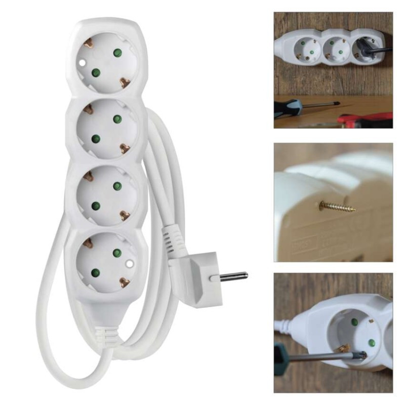aljzatok száma: 4× 2P + PE SCHUKO|alkalmazási nyelvek: –|az aljzatok és dugók anyaga: műanyag|értékesítési csomagolás: 1 db, akasztható|értesítések a mobilalkalmazáshoz: nem|feszültség/áram: 250 V~/16 A max.|gyerekzár: igen|hangalapú asszisztensek általi vezérlés: nem|hossz: 1,5 m|jelátviteli frekvencia: –|kapcsoló: nem|kompatibilitás: –|max. terhelés: 3 680 W|protokoll: –|szigetelés típusa: PVC|szín: fehér|támogatott OS: –|USB kimenet: nincs megadva|vezeték: H05VV-F3G 1,5 mm²