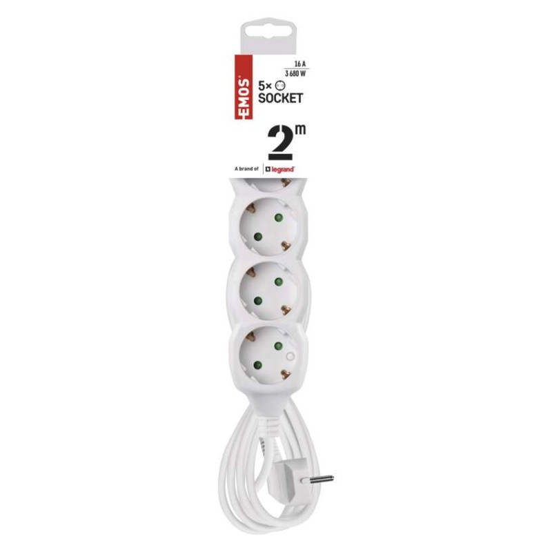 Hosszabbító 2 m  /  5 aljzat  /  fehér  /  PVC  /  1 mm2