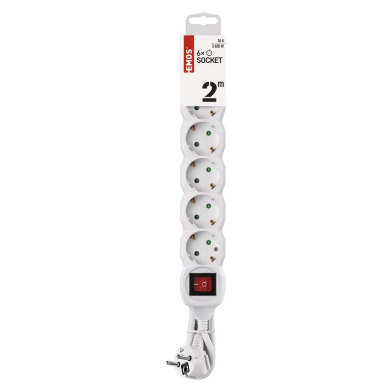 Hosszabbító 2 m / 6 aljzat / kapcsolós / fehér / PVC / 1 mm2