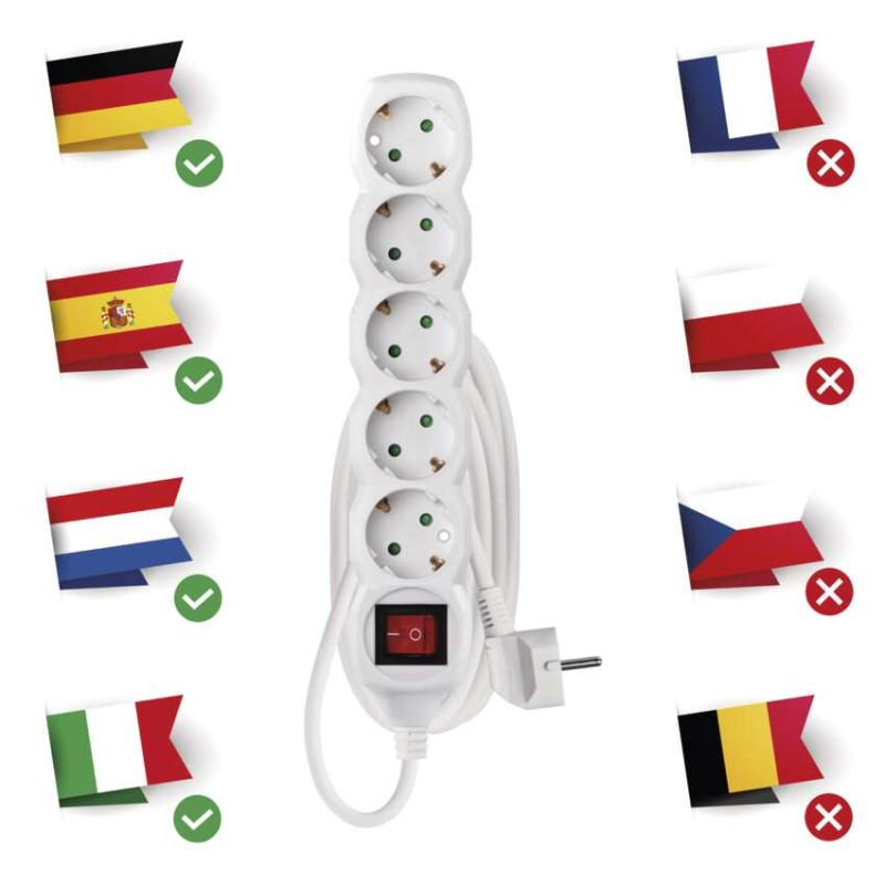 aljzatok száma: 5× 2P + PE SCHUKO|az aljzatok és dugók anyaga: műanyag|értékesítési csomagolás: 1 db, akasztható|feszültség/áram: 250 V~/16 A max.|gyerekzár: igen|hossz: 3 m|kapcsoló: igen|max. terhelés: 3 680 W|szigetelés típusa: PVC|szín: fehér|USB kimenet: nem|vezeték: H05VV-F3G 1,5 mm²