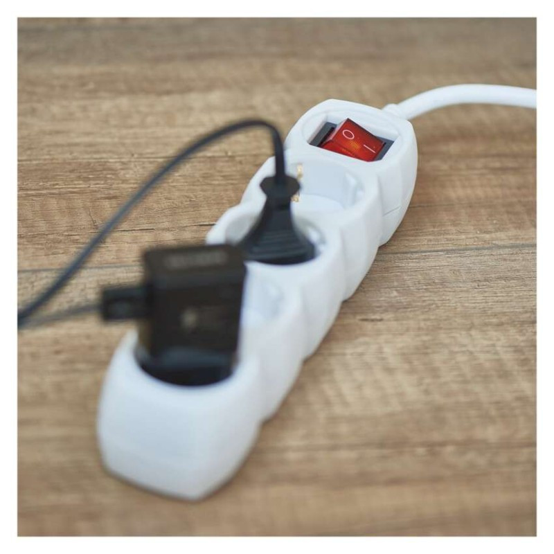 aljzatok száma: 4× 2P + PE SCHUKO|az aljzatok és dugók anyaga: műanyag|értékesítési csomagolás: 1 db, akasztható|feszültség/áram: 250 V~/16 A max.|gyerekzár: igen|hossz: 5 m|kapcsoló: igen|max. terhelés: 3 680 W|szigetelés típusa: PVC|szín: fehér|USB kimenet: nem|vezeték: H05VV-F3G 1,5 mm²