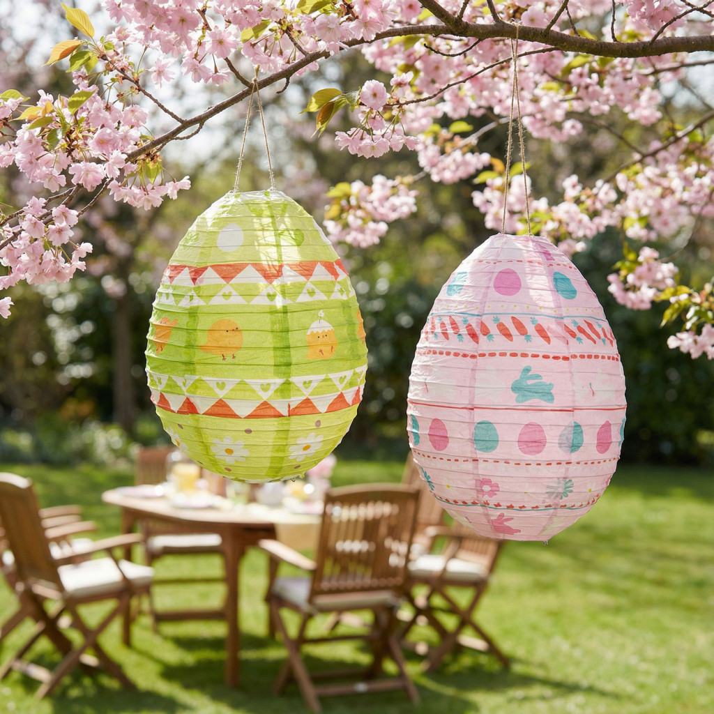 Húsvéti dekoráció - papír lampion - tojás - zöld, rózsaszín - Ø30 cm