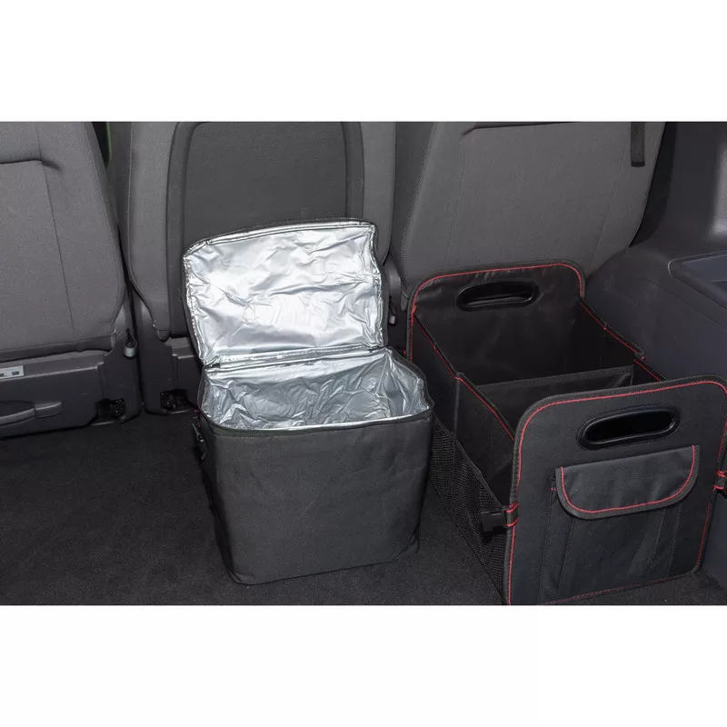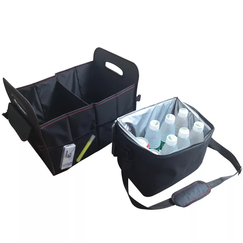 Vállpántos hűtőtáska és csomagatartóban használatos tároló, rendszerező. Egymással összecsatolhatók, így kevésbé csúszkálnak a csomagtartóban történő elhelyezéskor.