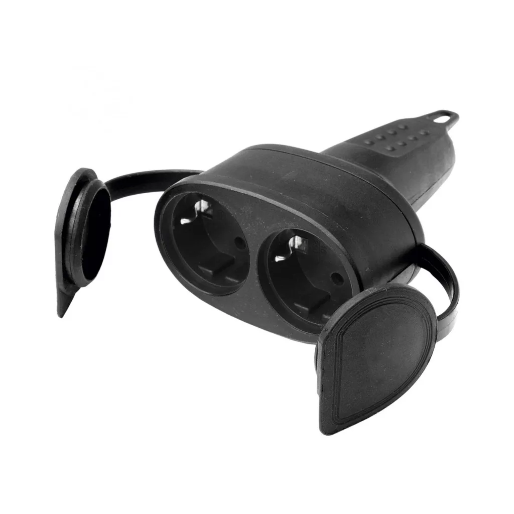 Home NGA 02 földelt dupla aljzat egyenes kábelvezetéssel, 2 aljzat gyermekvédelemmel, kül- és beltéren is használható, max. 3680 W, fekete