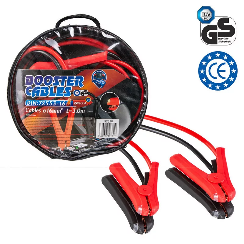 Kiváló minőségű rézből (99%) készült 16 mm2 kábel, erős, biztonságos, teljesen szigetelt, strapabíró csipeszekkel!