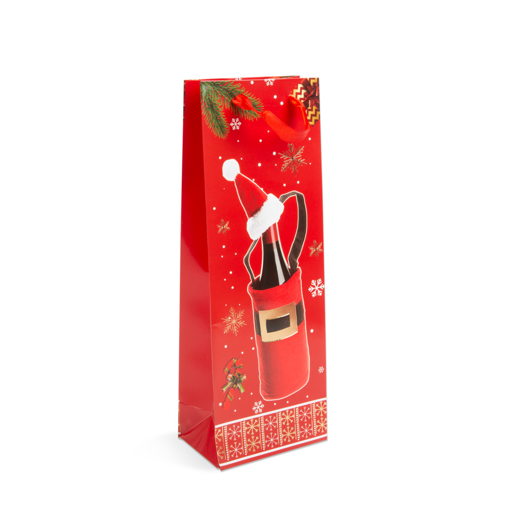Ha szeretné stílusosan átadni ajándékát a karácsonyi ünnepek alkalmával, akkor ez a karácsonyi italostasak tökéletes választás. Kiváló minőségű, tartós papírból készült, és mérete miatt ideális a legtöbb italosüveg átnyújtására. Az egyszerűen használható ajándéktasak praktikus és megkönnyíti az ajándékcsomagolás folyamatát. A karácsonyi ajándéktasak díszes, ünnepi megjelenése biztosan elnyeri majd mindenki tetszését, és emeli az ünnepi hangulatot.