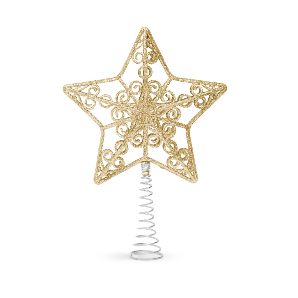 Minden karácsonyfa nélkülözhetetlen kelléke a csúcsdísz. Koronázza meg karácsonyfája díszítését ezzel az arany színű klasszikus csillag alakú dísszel.