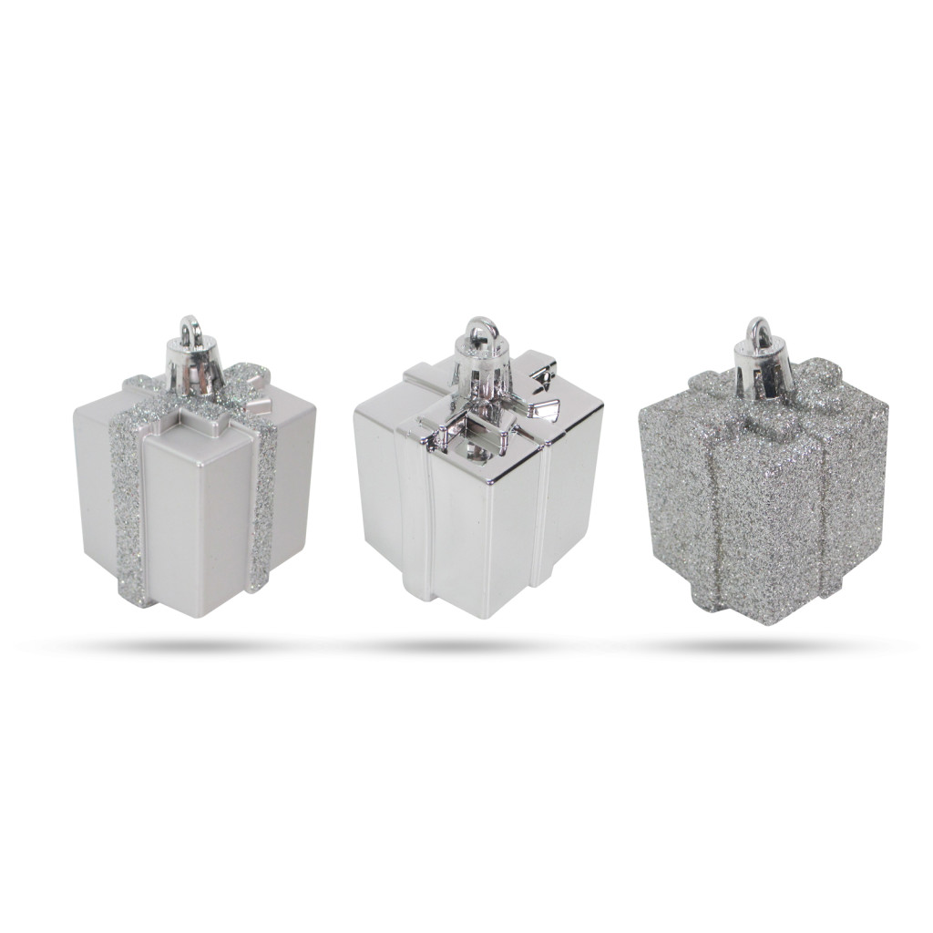Karácsonyfadísz szett - ezüst ajándék - 4,5 cm - 6 db / szett