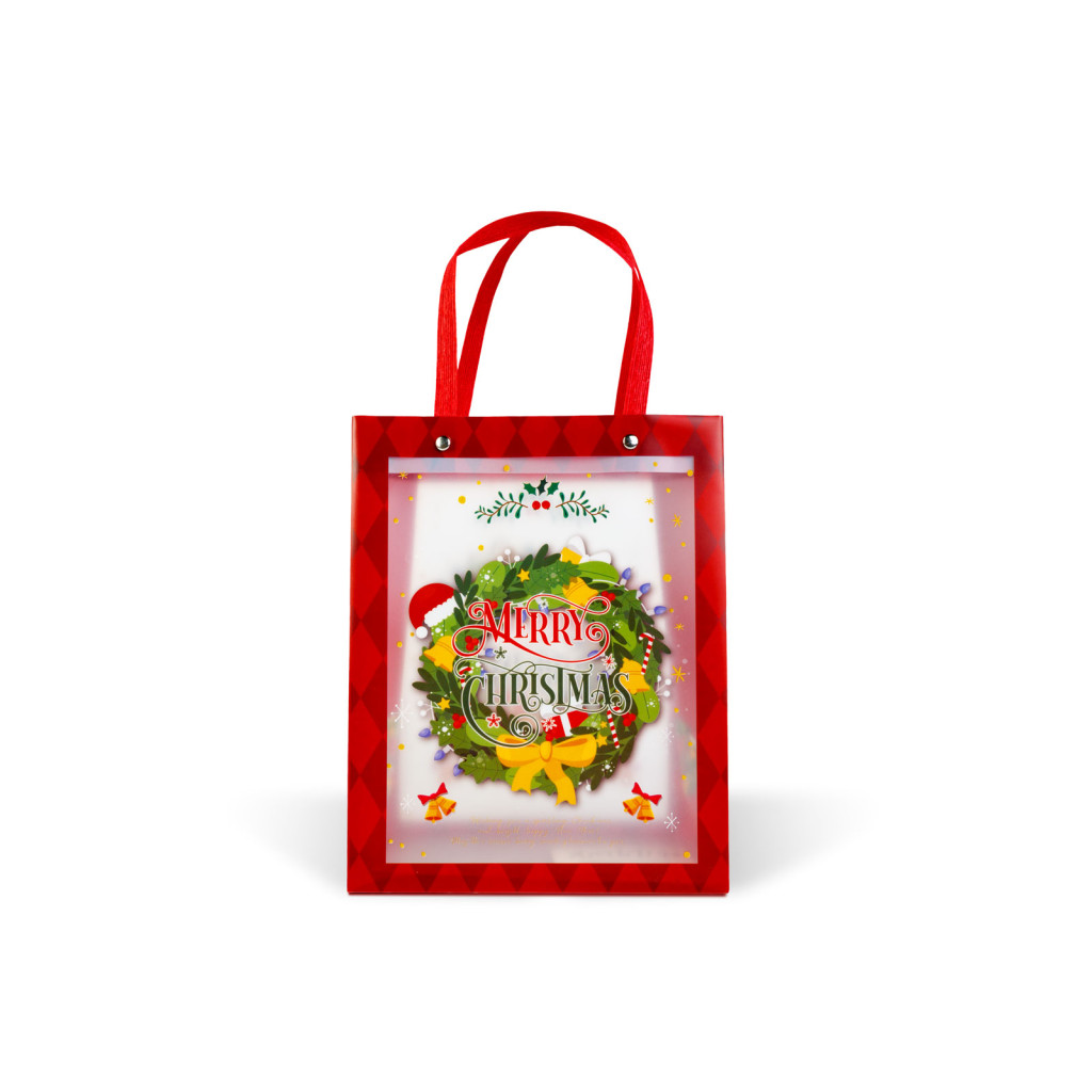 Tegye különlegessé az ajándékozást ezzel a mutatós karácsonyi ajándéktáskával! Praktikus méretű, így ideális apróbb meglepetések, édességek vagy kisebb ajándékcsomagok átadására. Kétféle ünnepi mintával – lakókocsival vagy karácsonyi koszorúval – kapható. A táska áttetsző borítása különösen elegáns, dekoratív megjelenést kölcsönöz.