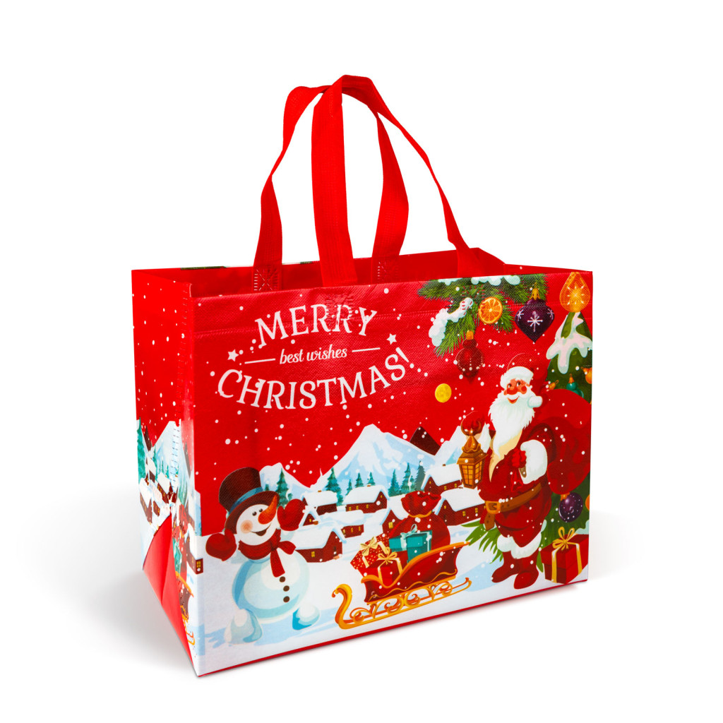 Ha szeretne igazán ütős és stílusos ajándékot adni barátainak és családjának karácsonykor, akkor ez a karácsonyi ajándéktáska tökéletes választás lehet átnyújtására! A vidám designnal ellátott, nem szőtt anyagból készült táska, 4 féle karácsonyi motívummal díszített. Strapabíró anyagból készült, mérete miatt ideális ajándékok és édességek tárolására, átadására. Nagyméretű fülének köszönhetően könnyű és kényelmes hordozhatóságot biztosít.
