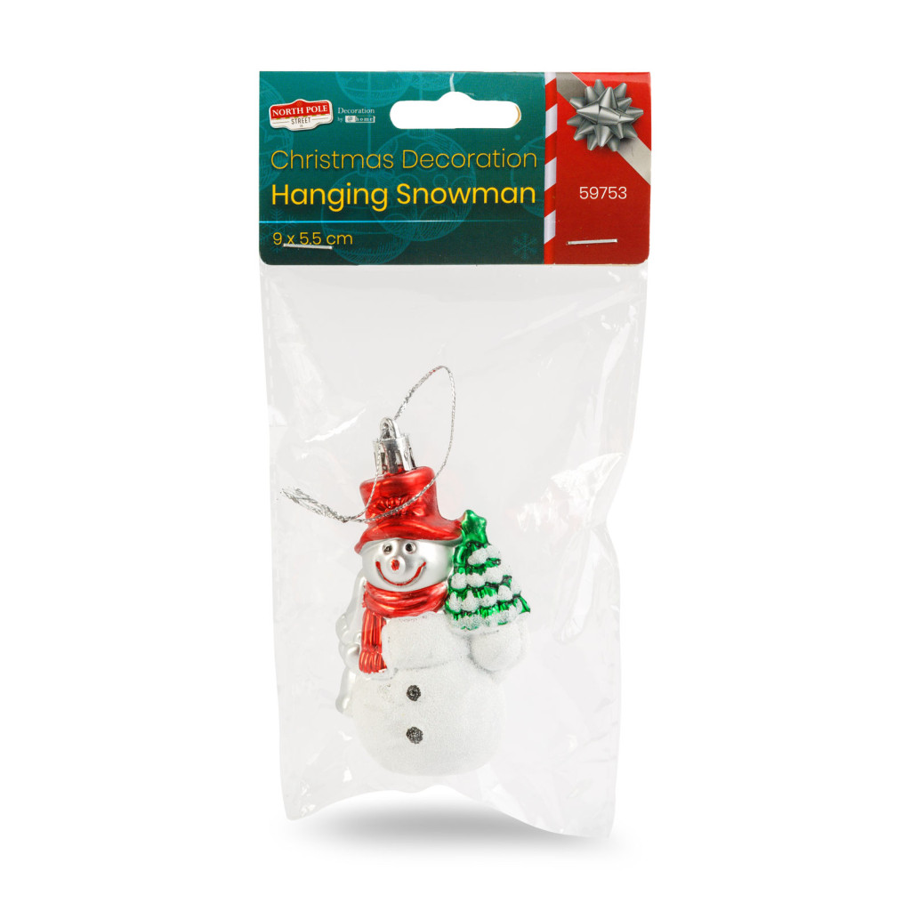 Karácsonyi dekoráció - hóember - akasztható - műanyag - 9 x 5,5 cm