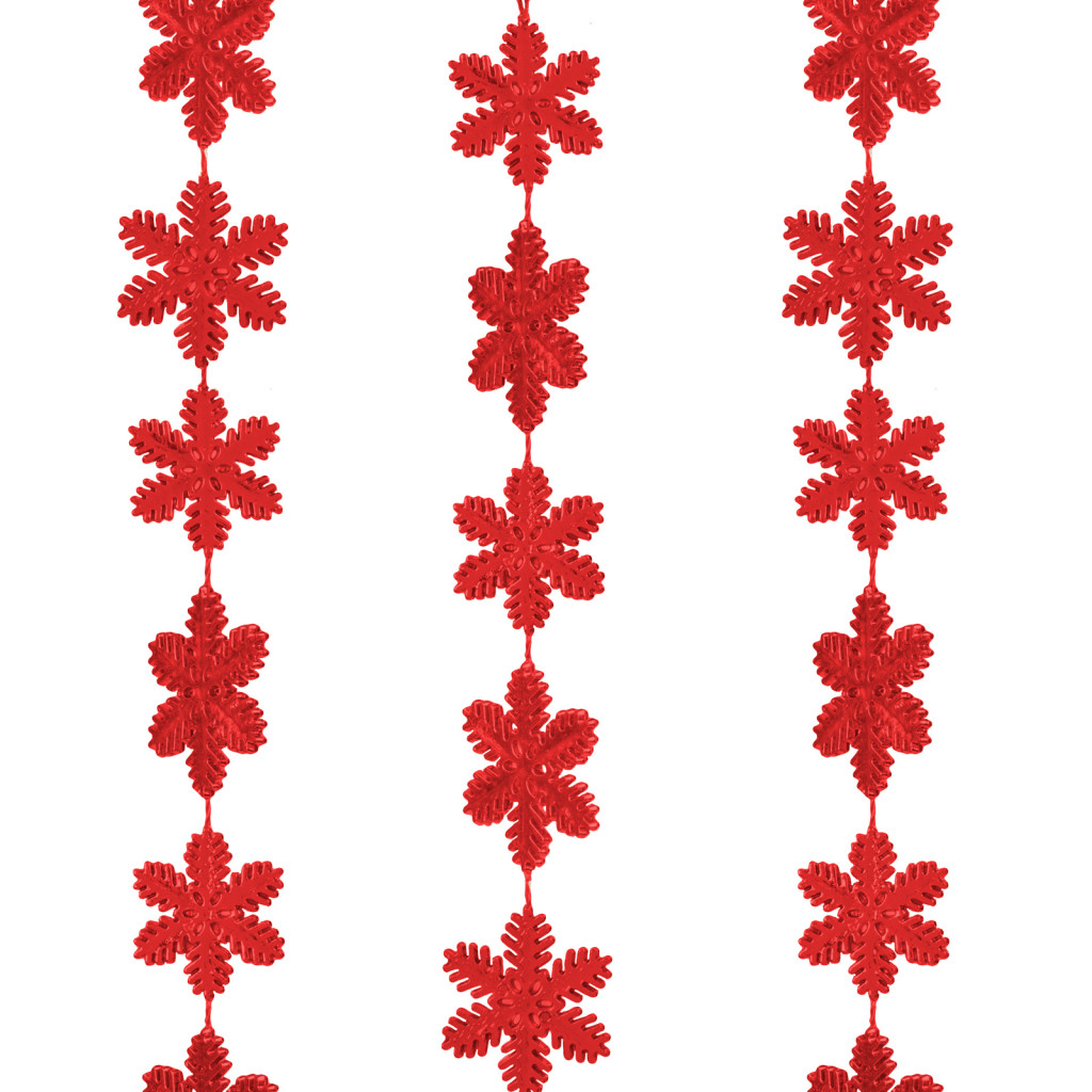Karácsonyi girland - hópehely - 2,7 m - piros