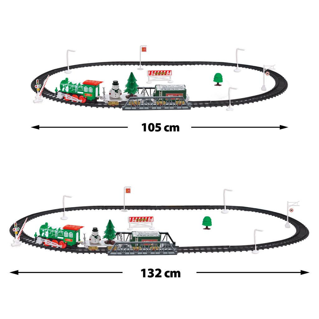 Ez a kisvonat nem csak díszít, hanem egyedülálló funkcióival az ünnepi hangulatot is fokozza. A mozdony világít, zenél, varázslatos élményt nyújt az egész családnak, ahogy eltűnik a karácsonyfa mögött, ajándékok között a vagonokat és a Hóember kocsit húzva. Az összeszerelés nem igényel szakértelmet, pár perc alatt összerakható. A termék kiváló minőségű anyagokból készült, így hosszú élettartammal rendelkezik. A kisvasút meghajtását 2 darab AA elem biztosítja, amelyeket a mozdonyba kell helyezni, majd az oldalán lévő kapcsolóval tudja ki- illetve bekapcsolni. A vagonok sorrendjét tetszőlegesen megválaszthatja.