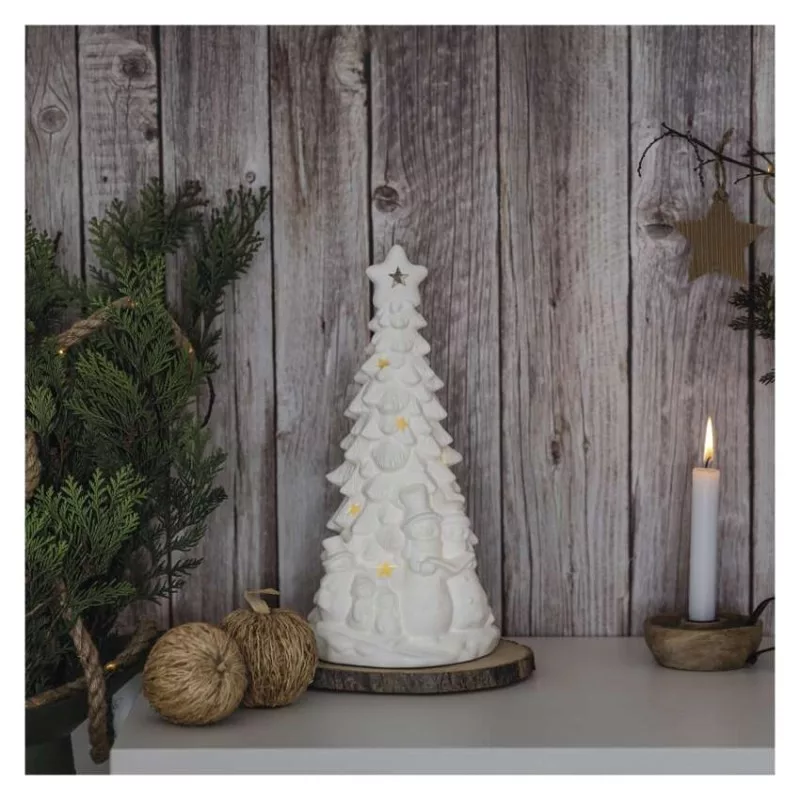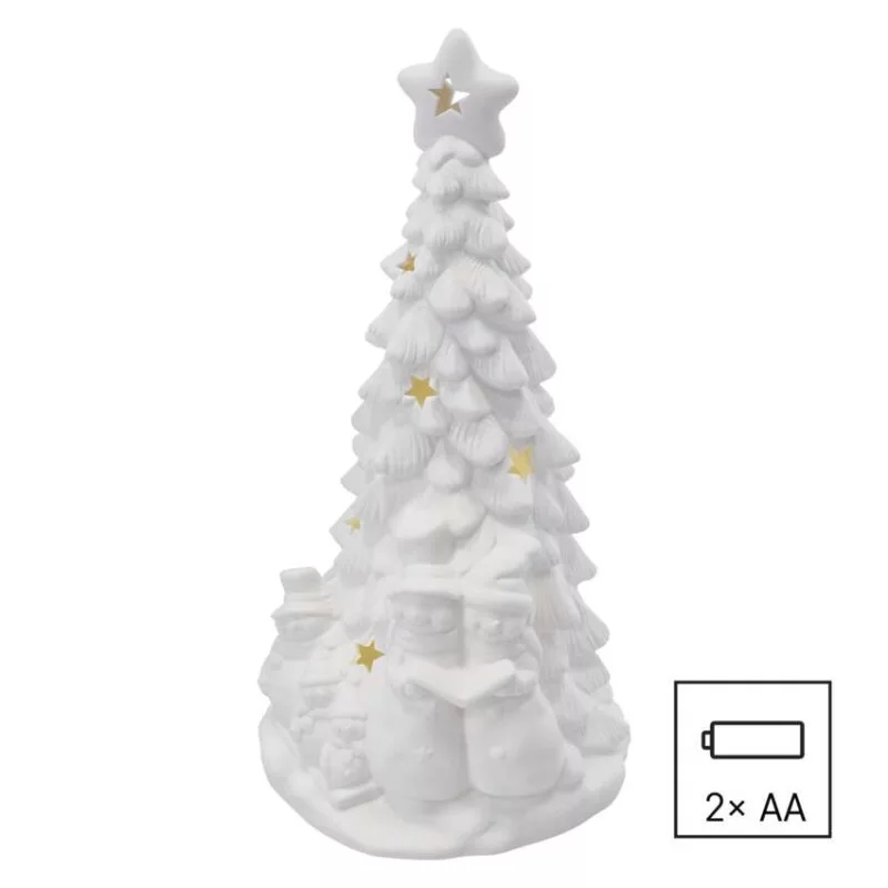 anyag: kerámia|bemeneti feszültség: nincs megadva|élettartam: 10 000 óra|értékesítési csomagolás: 1 db, doboz|fényforrás: LED|fény színe: meleg fehér|fogyasztás: 0,4 W|garancia-időszak: 2 év|használat: beltéri|időzítő: nem|kábel színe: nincs megadva|kimeneti feszültség: 3 V DC|LED-ek száma: 4|méretek: 17 × 17 × 33,5 cm|tápellátás típusa: elem 2× AA (nem a csomag része)|tápvezeték hossza: nincs megadva|távvezérlő: nem|termék: karácsonyfa|védettség: IP20