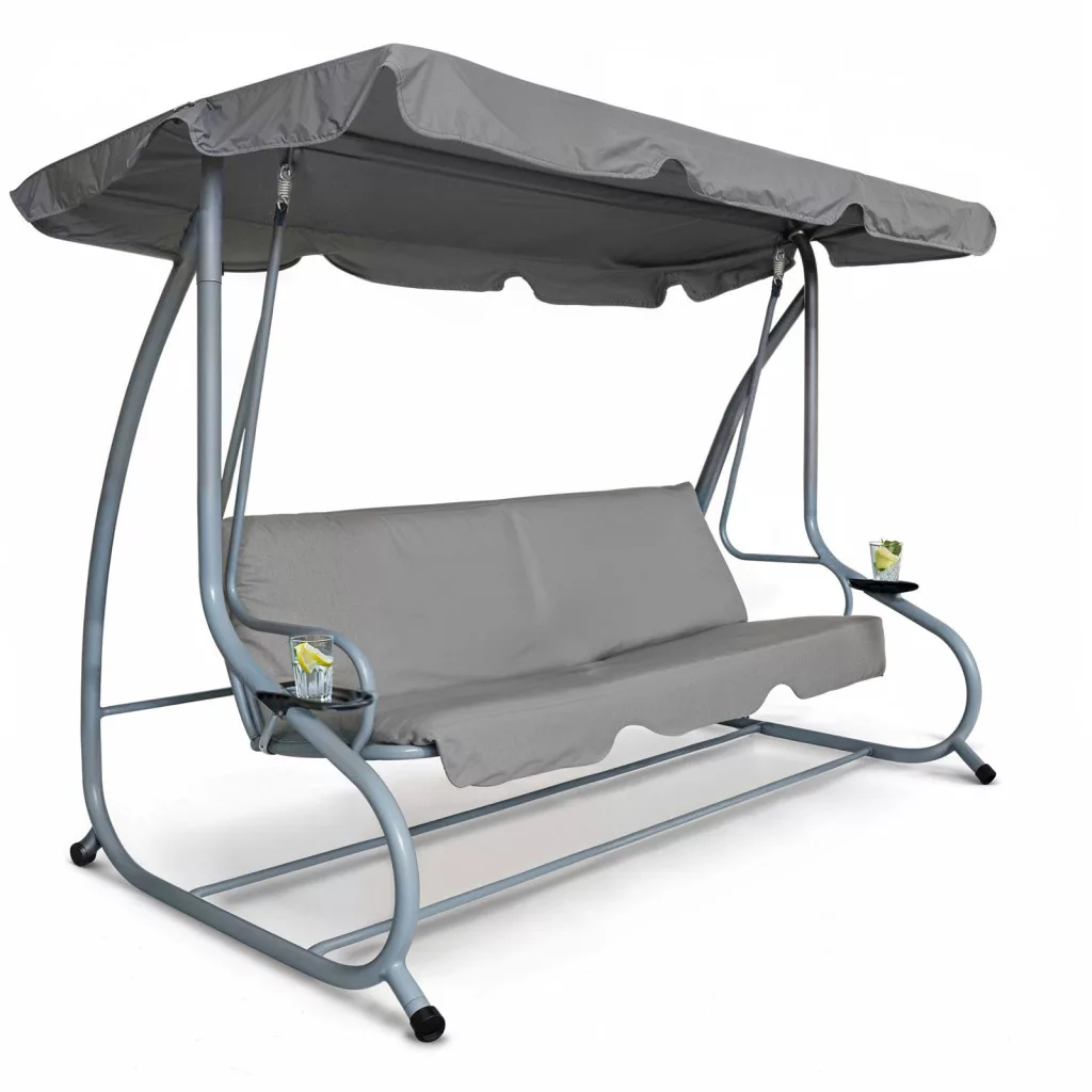 Kerti hintaágy - 200 x 120 x 164 cm - szürke - pohártartóval