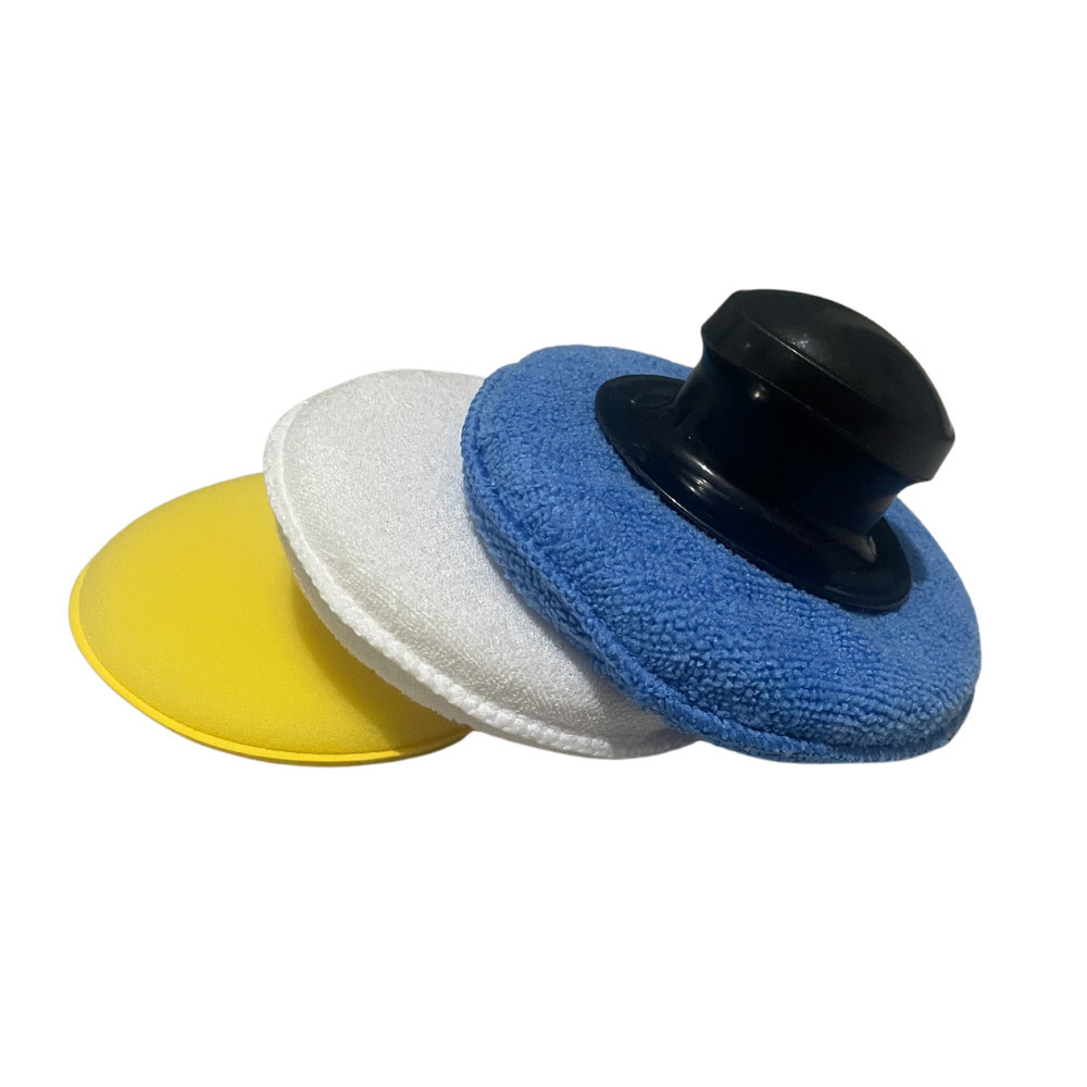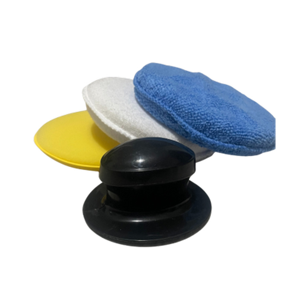 3 db 125 mm átmérőjű kerek polírozótárcsa készlet: 1x habkorong a műanyagok védőbevonatának felviteléhez, 2x különböző szerkezetű mikroszálas tárcsa minden típusú műanyag felület egyszerű tisztításához a jármű belsejében. A csomag tartalmaz egy kézi tépőzáras fogantyút is a kényelmes munkavégzés érdekében.
