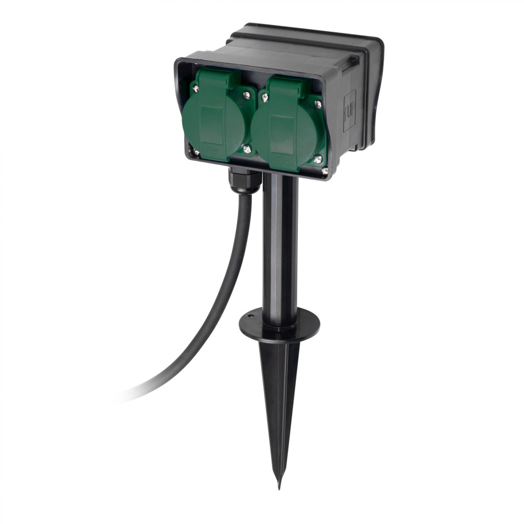 Kültéri, leszúrható NVL 4-5/BK/1,5 elosztó 4 darab gyermekvédelemmel ellátott zárófedeles aljazot foglal magában. Az elosztó vezetékének hossza 5 méter masszív, tömör gumikábel. Használja bátran az IP44 védelemmel bíró terméket kerti szerszámok üzemeltetésére!