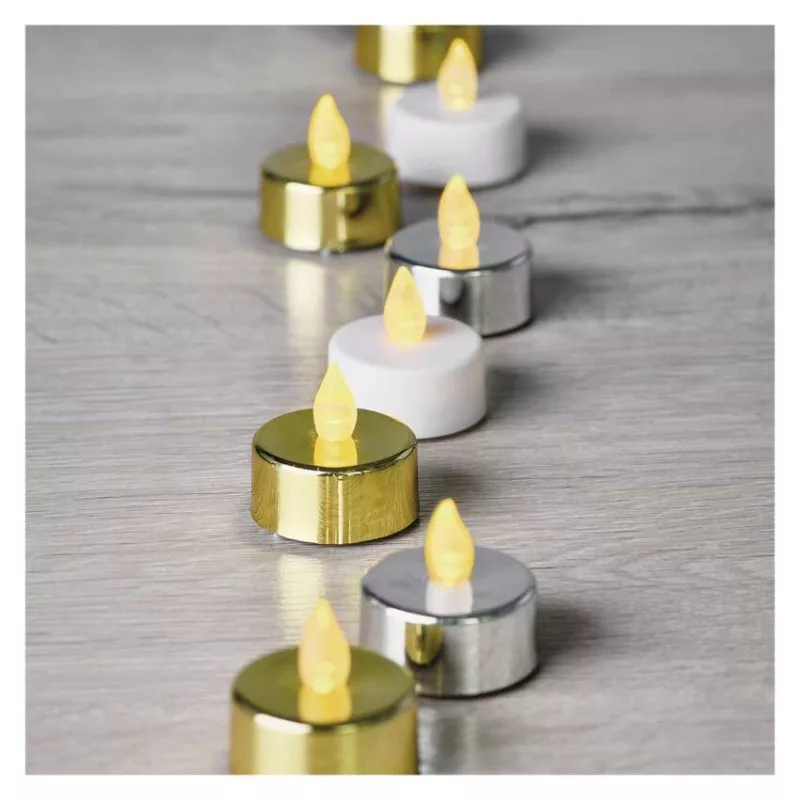anyag: műanyag|bemeneti feszültség: nincs megadva|élettartam: 10 000 óra|értékesítési csomagolás: 6 db, doboz|fényforrás: LED|fény színe: vintage|fogyasztás: 0,06 W|garancia-időszak: 2 év|használat: beltéri|időzítő: nem|kábel színe: nincs megadva|kimeneti feszültség: 3 V DC|LED-ek száma: 6× 1|méretek: 3,8 × 3,8 cm|tápellátás típusa: elem 6× CR203 (tartozék)|tápvezeték hossza: nincs megadva|távvezérlő: nem|termék: gyertya|védettség: IP20
