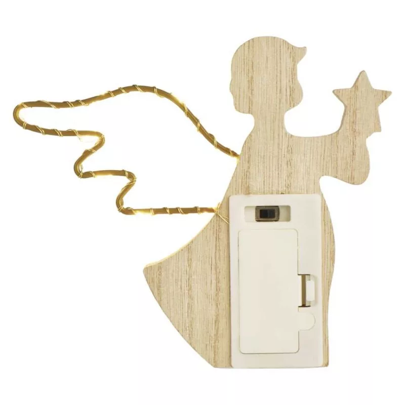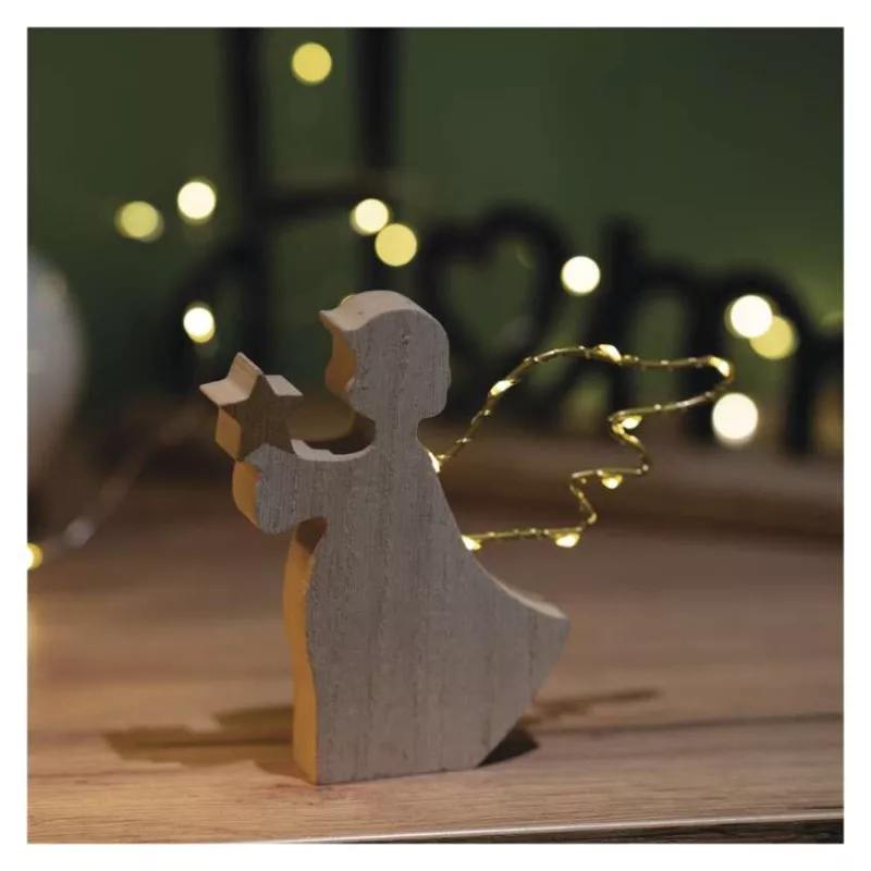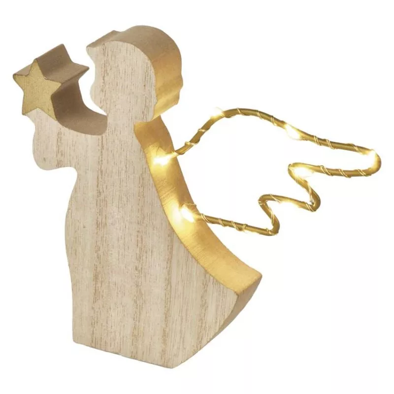 anyag: fa|bemeneti feszültség: –|élettartam: 10 000 óra|értékesítési csomagolás: 1 db, doboz|fényforrás: LED|fény színe: meleg fehér|fogyasztás: 0,36 W|garancia-időszak: 2 év|használat: beltéri|időzítő: igen|kábel színe: –|kimeneti feszültség: 3 V DC|LED-ek száma: 8|méretek: 14,5 × 2 × 13 cm|tápellátás típusa: elem 2× AAA (nem a csomag része)|tápvezeték hossza: –|távvezérlő: nem|termék: angyal|védettség: IP20