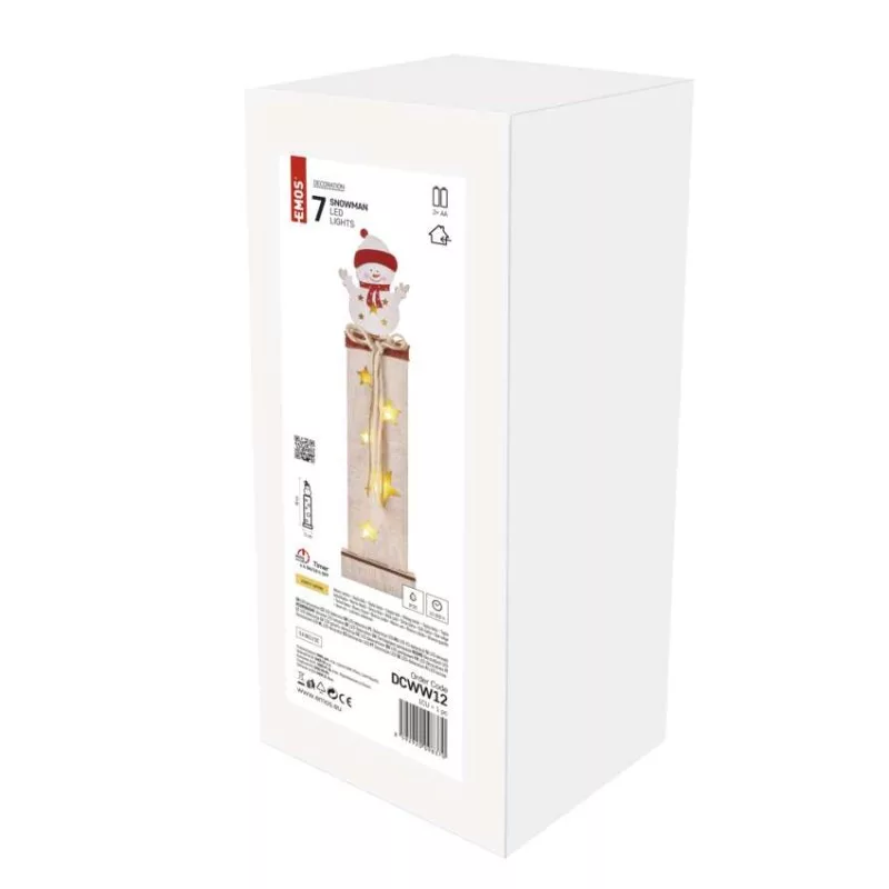 anyag: fa|bemeneti feszültség: nincs megadva|élettartam: 10 000 óra|értékesítési csomagolás: 1 db, doboz|fényforrás: LED|fény színe: meleg fehér|fogyasztás: 0,4 W|garancia-időszak: 2 év|használat: beltéri|időzítő: igen|kábel színe: nincs megadva|kimeneti feszültség: 3 V DC|LED-ek száma: 7|méretek: 11 × 5 × 46 cm|tápellátás típusa: elem 2× AA (nem a csomag része)|tápvezeték hossza: nincs megadva|távvezérlő: nem|termék: hóember|védettség: IP20