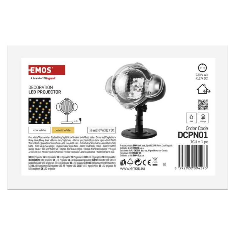 anyag: műanyag|bemeneti feszültség: 230 V~|élettartam: 10 000 óra|értékesítési csomagolás: 1 db, doboz|fény színe: hideg fehér/meleg fehér|fogyasztás: 4,2 W|funkció: forgó fény|garancia-időszak: 2 év|használat: kültéri és beltéri|időzítő: nem|kimeneti feszültség: 14 V DC|minta: csillagok|tápellátás típusa: AC (hálózati) adapter|tápvezeték hossza: 3 m|távvezérlő: nem|technológia: LED|termék: projektor|védettség: IP44