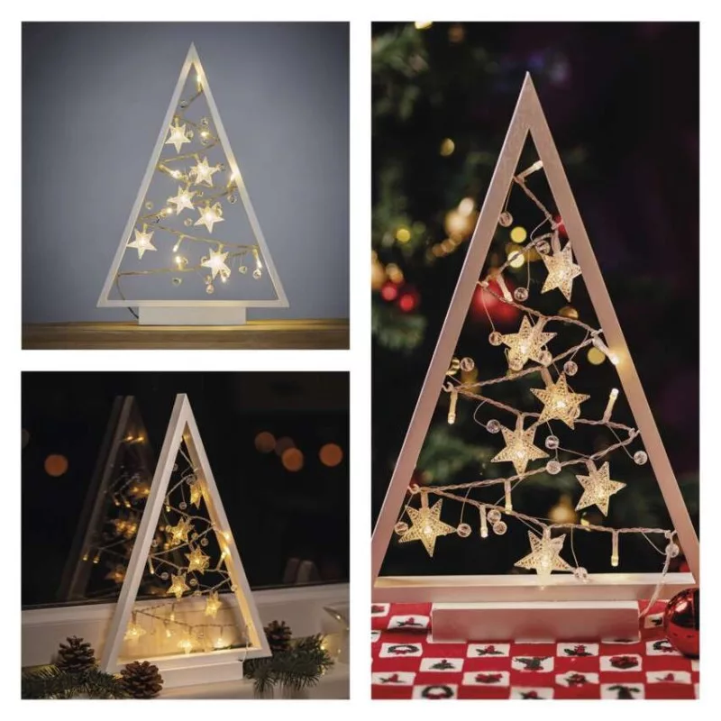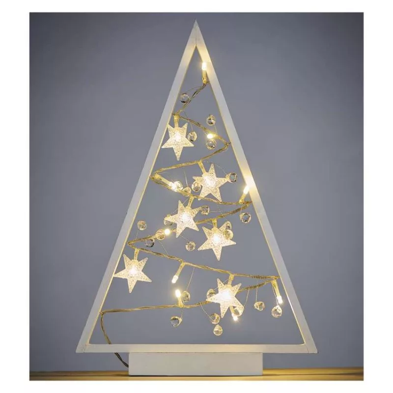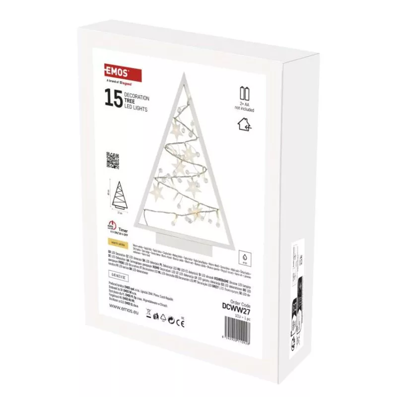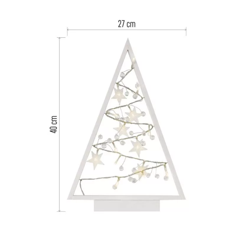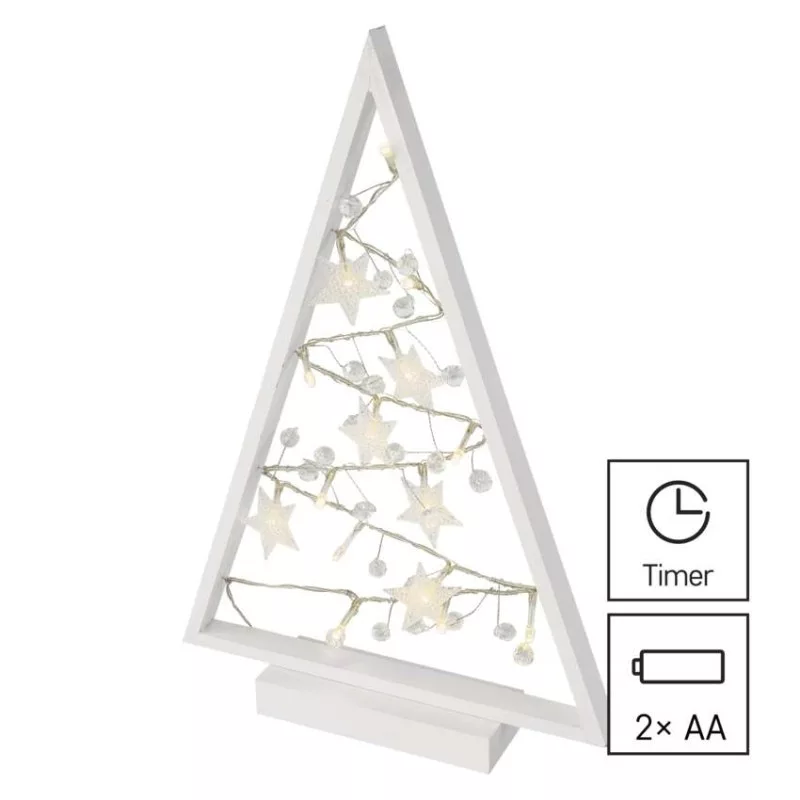 anyag: fa|bemeneti feszültség: nincs megadva|élettartam: 10 000 óra|értékesítési csomagolás: 1 db, doboz|fényforrás: LED|fény színe: meleg fehér|fogyasztás: 0,45 W|garancia-időszak: 2 év|használat: beltéri|időzítő: igen|kábel színe: nincs megadva|kimeneti feszültség: 3 V DC|LED-ek száma: 15|méretek: 27 × 40 × 5 cm|tápellátás típusa: elem 2× AA (nem a csomag része)|tápvezeték hossza: nincs megadva|távvezérlő: nem|termék: karácsonyfa|védettség: IP20