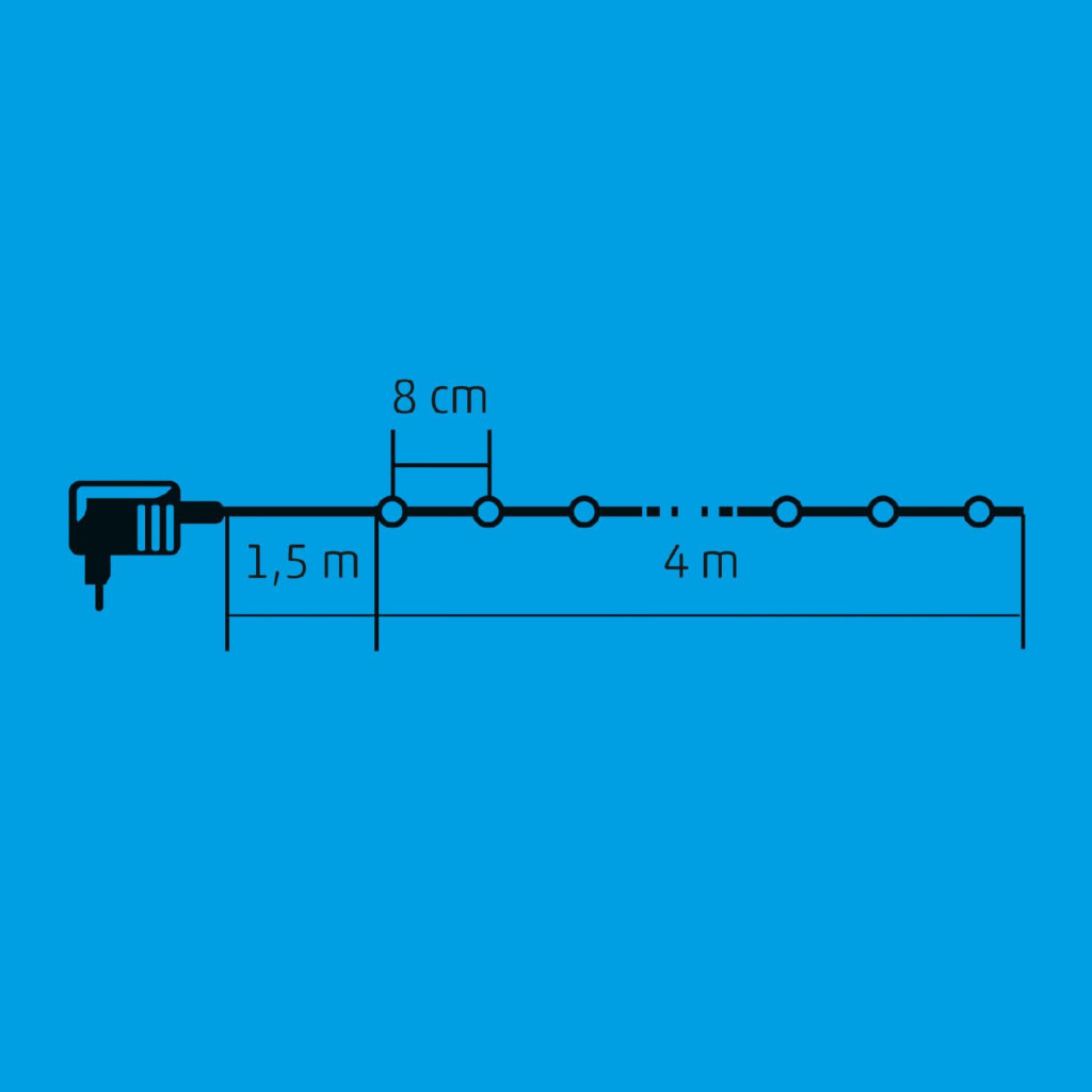 Home KII 50/BL LED-es fényfüzér, 4 m / 50 db kék LED, állófényű, zöld vezeték, hálózati adapter, beltéri kivitel
