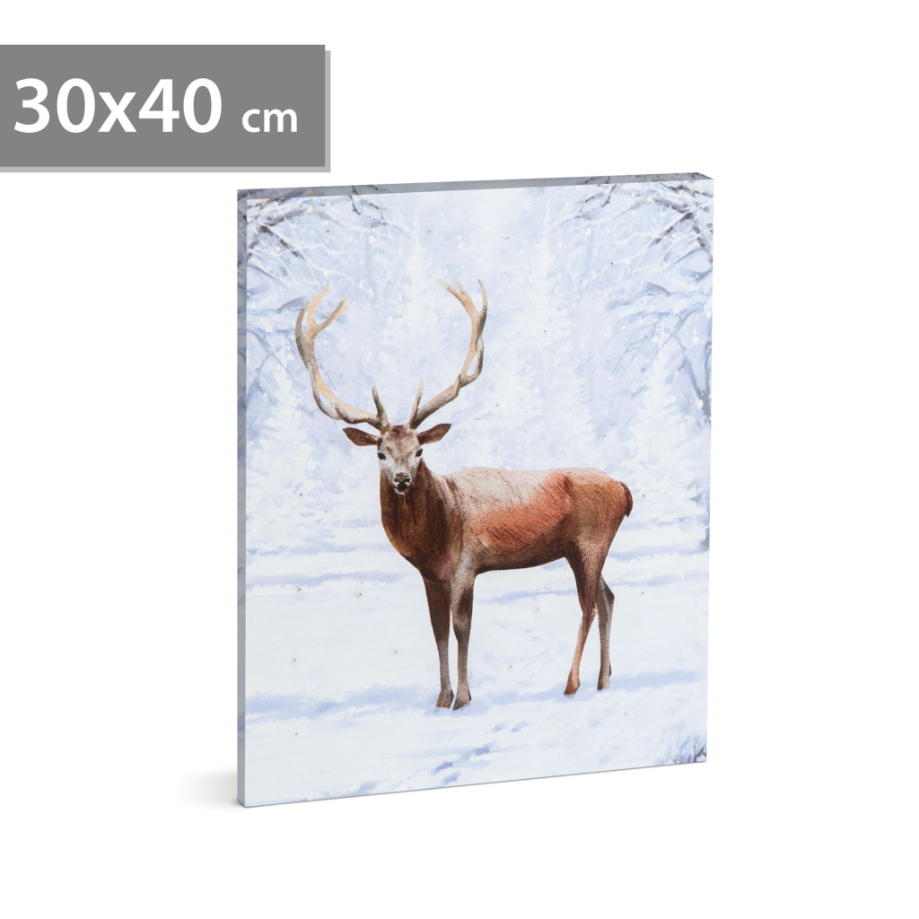 LED-es fali hangulatkép - rénszarvas -  2 x AA, 30 x 40  cm