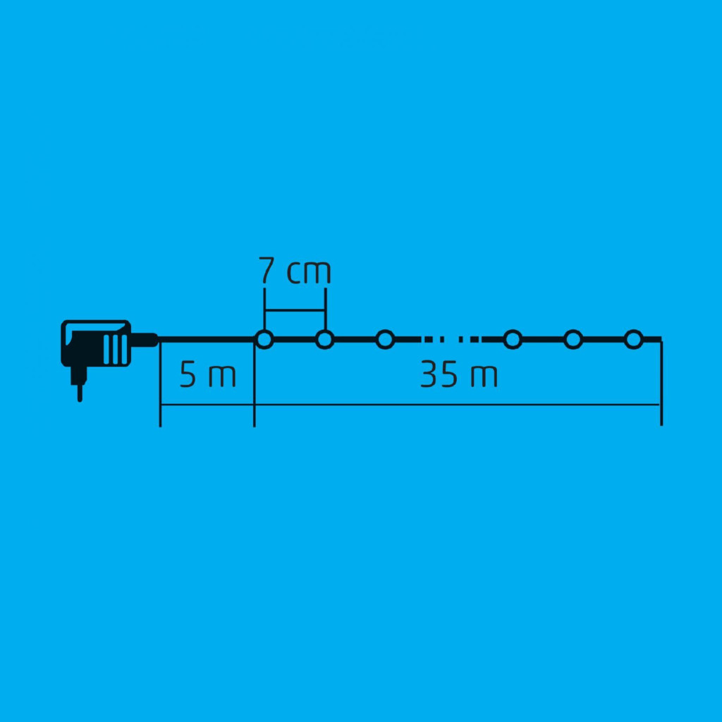Az 500 db színes, állófényű LED folyamatosan ragyog, emelve az adott helyiség vagy kert hangulatát.